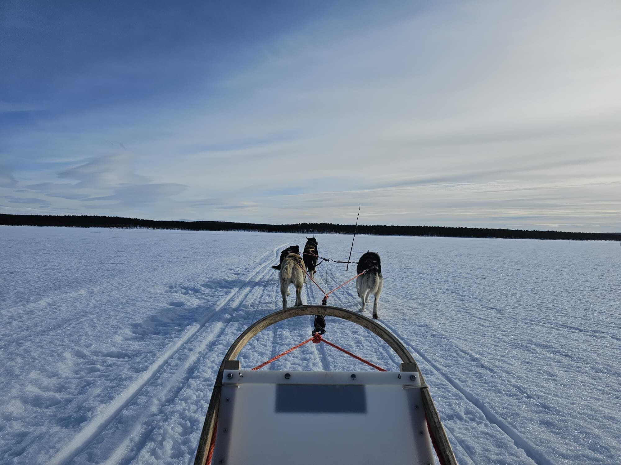 Diese Gegend in der Tundra ist noch nicht so touristisch. Perfekt für Schneemobil-Touren auf dem gefrorenen See und Hundeschlitten Touren in Hetta.